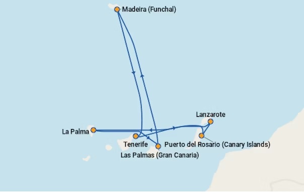Вечером мы заселимся на наш круизный лайнер. Кроме Тенерифе в течении нашего недельного круиза мы посетим еще 4 острова в архипелаге Канарские острова.